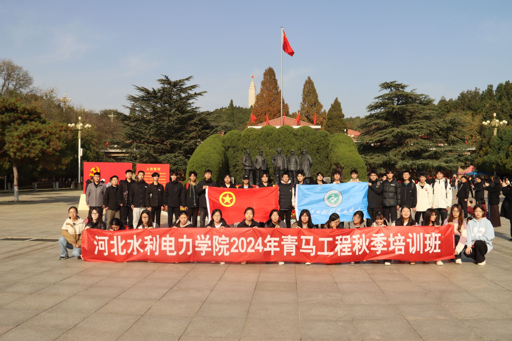 11月16日,校团委组织2024年“青马工程”秋季班学员赴西柏坡红色教育基地开展研学实践活动。本次活动由副校长杨凯带队,校团委书记路维、兼职副书记吴春艳、教师张烨和青马学员共计40余人参加。革命圣地西柏坡曾是中共中央所在地,党中央和毛主席在此指挥了震惊中外的辽沈、淮海、平津三大战役,召开了具有伟大历史意义的党的七届二中全会和全国土地会议,解放了全中国,故有“新中国从这里走来”、“中国命运定于此村”的美誉。在讲解员的带领下,...