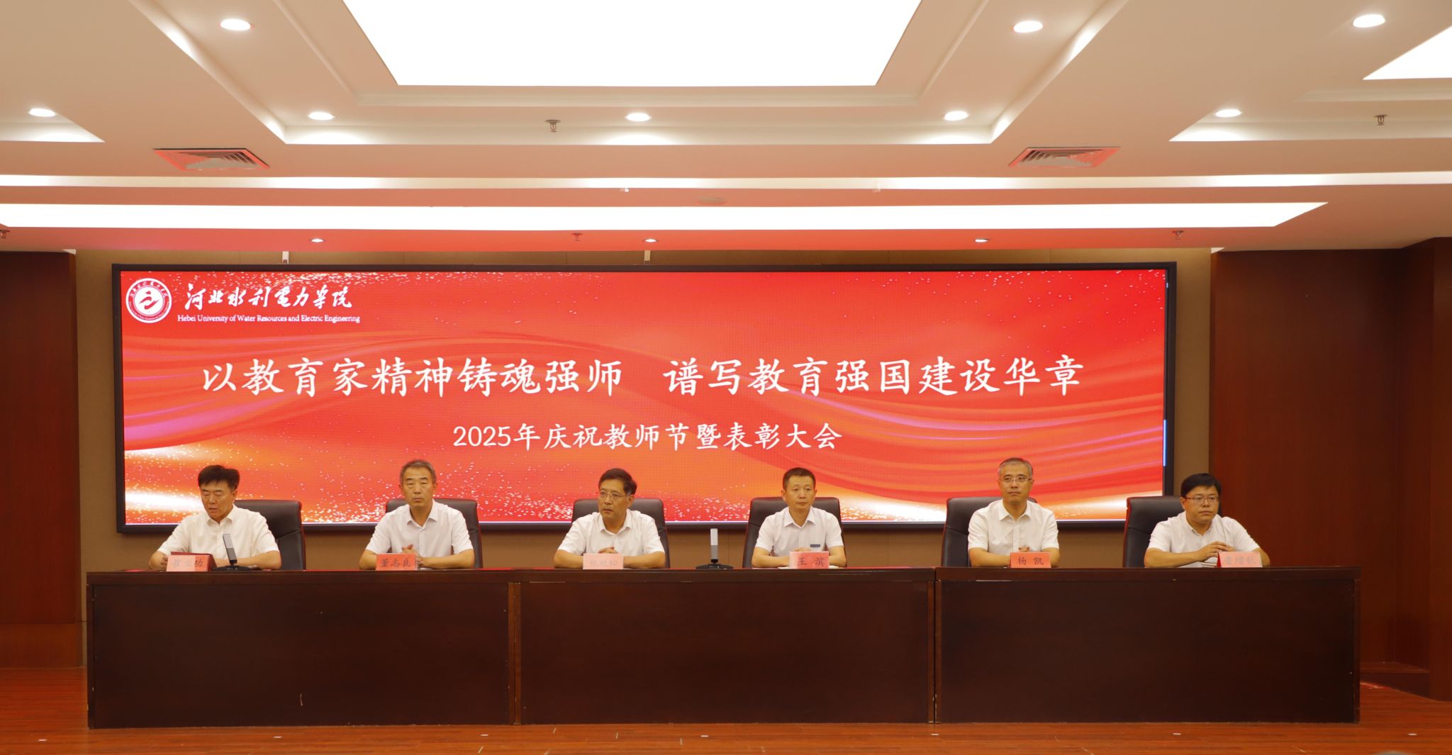 金秋九月,风携礼赞,教泽绵长,硕果初绽。9月9日下午,我校在弘文守正楼9楼报告厅举行庆祝第41个教师节暨表彰大会,大会主题为“以教育家精神铸魂强师,谱写教育强国建设华章”,对上一学年取得优异成绩的教职工及退休老教师和从教30年教职工进行表彰,激励广大教师和教育工作者积极投身教育强国建设新征程。校领导张效松、王滨、崔立功、杨凯、董志良、鲁增秋出席会议,大会由党委副书记崔立功主持。受表彰的教职工代表、新入职教师、...