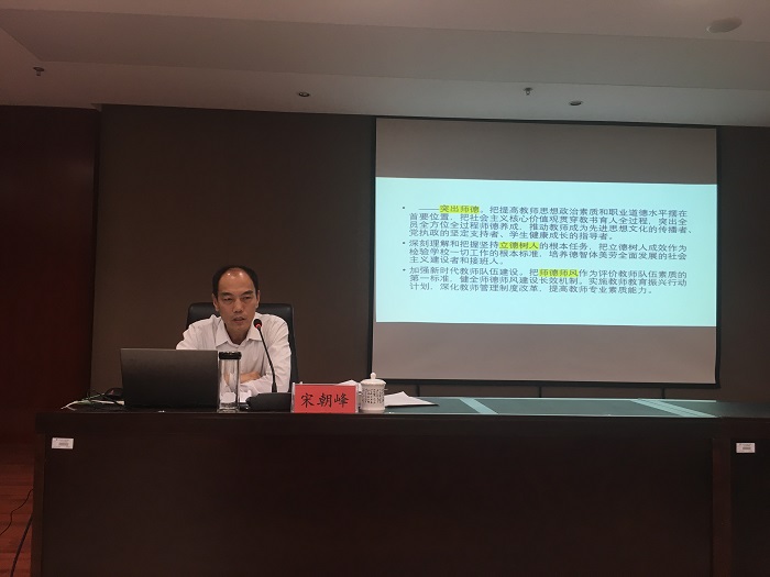 10月11日下午,在弘文守正楼9楼报告厅,我校青年教师教学发展培训班第四讲开讲,人事处处长宋朝峰受邀作了题为《师德师风建设与职业发展探索》的精彩报告。 宋朝峰处长结合本职工作,首先对教育、教师和师德师风做了...