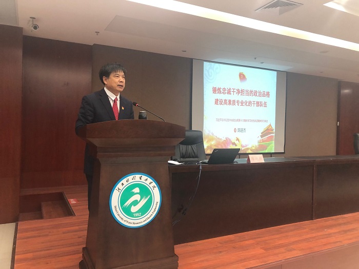 为贯彻落实“不忘初心、牢记使命”主题教育工作部署,实现主题教育具体目标,10月18日下午,党委书记陈进杰在弘文守正楼九楼报告厅为全校党员干部讲授主题教育专题党课。省委第十三巡回指导组成员彭钋、苗兰良到会指...