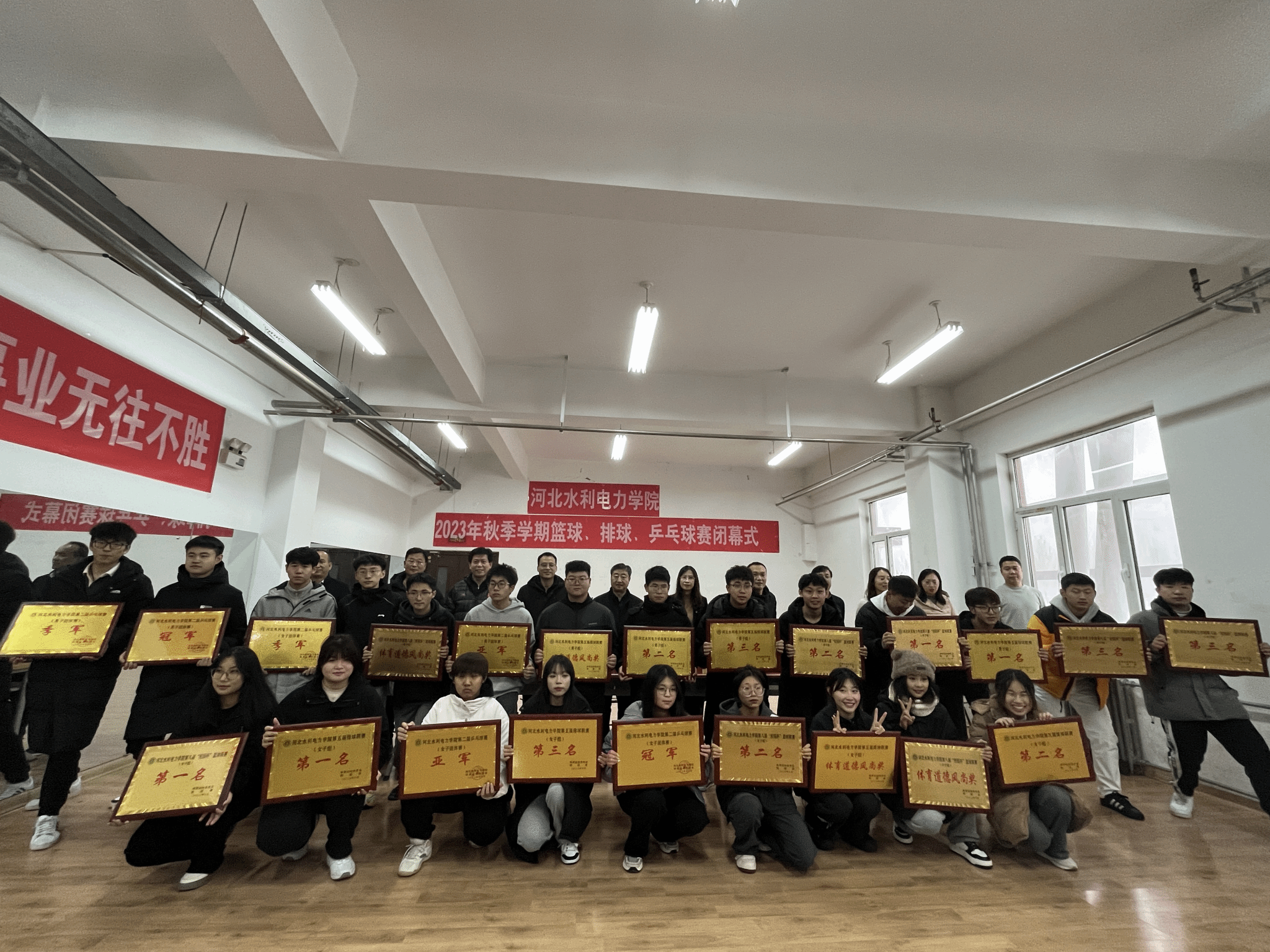 经过数月的激烈角逐,我校2023年秋季学期篮球、排球、乒乓球比赛于12月14日圆满结束。体育教学部、校团委、各系的相关领导及参赛队员代表参加了闭幕式。闭幕式上,体育教学部主任王明阳对本次比赛进行了总结发言,对所有参赛队伍的表现给予了高度评价,同时也对为比赛付出辛勤劳动的裁判员和工作人员表示了衷心的感谢。运动员们的顽强拼搏精神和技艺展示,为整个比赛增加了许多看点和亮点,篮球场上的高难度投篮、排球场上的精准发球和乒乓球场上的华丽回球,...