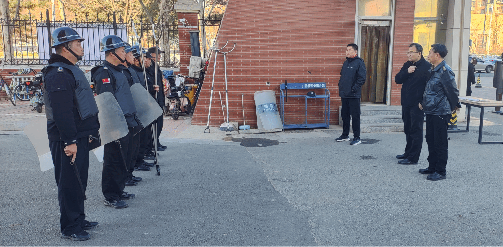 为有效防范校园暴力事件发生,提高保安员面对突发暴力恐怖事件的应急处理、自护自救能力,确保校园财产安全和师生人身安全。3月20日上午,安全工作处组织保安队开展反恐防暴应急演练活动。演练开始时,一名由保安员扮演的“可疑人员”想进入校园未果,持械强行闯入,值班保安员立即报告总指挥,总指挥下达启动应急预案,应急分队收到后携带防暴工具赶赴现场,手握防暴盾、钢叉上前挡住“歹徒”,大家齐心协力把“歹徒”逼退至大门外草坪,...