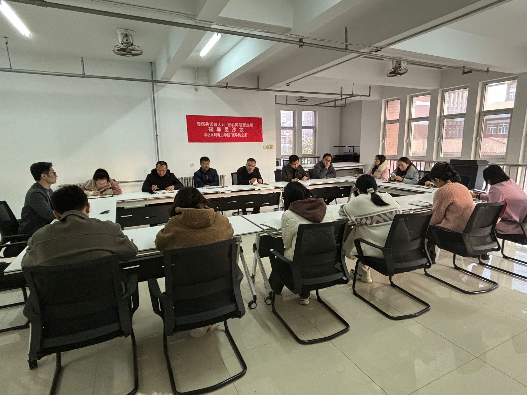 11月19日下午,学工部在“一站式”学生社区3号公寓楼多功能活动室举办“关爱学生 暖心育人”辅导员主题沙龙,各系副书记、辅导员代表等共计16人参加本期沙龙。活动中,学工部路鹏介绍了开展“期末暖冬行动”的各项安排和辅导员“倾听学生心声、关心关爱学生成长、全面促进学生成才”的工作理念。在交流研讨环节,各系辅导员通过一个个生动的案例,就如何通过谈心谈话走进学生内心,理解学生,共情学生,进行了深入的讨论。水利工程系副书记史琳指出,...