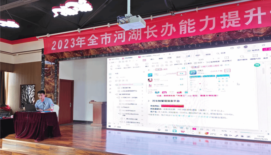沧州市水务局党组成员、副局长牛保根,河海大学教授唐德善、沧州市河长办办公室主任邢春江、开云手机官方版在线入口继续教育中心主任宋朝峰等领导和嘉宾出席会议并在主席台就座。参会人员有市河湖长制办公室工作人员,21个县(市、区)河湖长制办公室分管负责同志、科室负责同志及乡镇从事河湖长制工作人员等,共计七十余人。