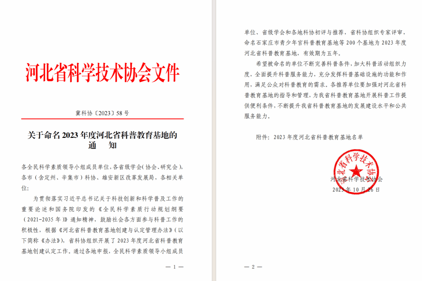 为贯彻落实习近平总书记关于科技创新和科学普及工作的重要论述和国务院印发的《全民科学素质行动规划纲要(2021-2035年)》通知精神,我校积极动员,精心组织申报2023年度河北省科普教育基地。通过全民科学素质领导小组成员单位、省级学会和各地科协初评与推荐,省科协组织专家评审,我校申报的“河北省智慧交通科普教育基地”成功入选河北省科普教育基地,有效期为五年。