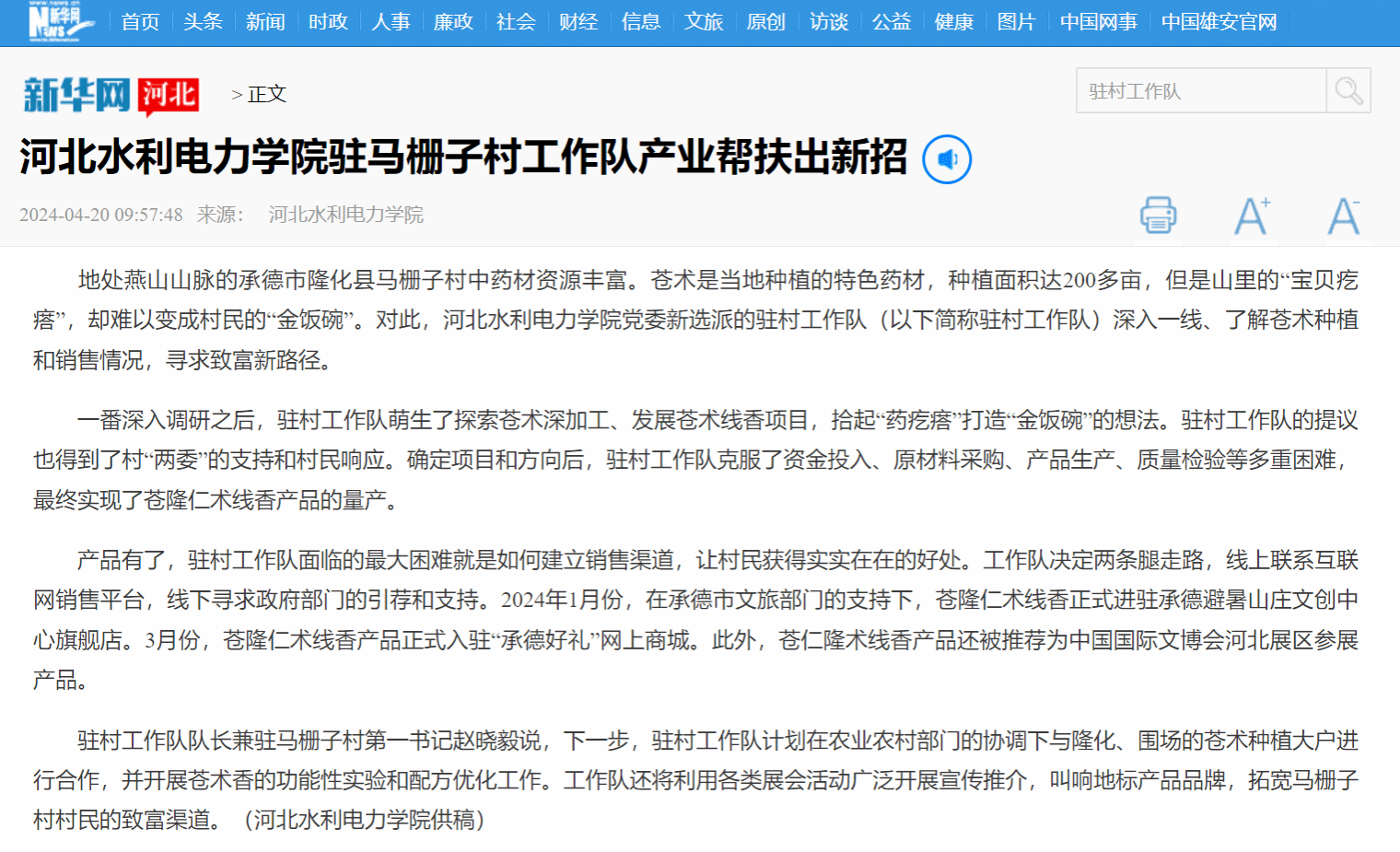 4月20日,新华网以《开云手机官方版在线入口驻马栅子村工作队产业帮扶出新招》为题,对我校驻村工作队产业帮扶事迹进行报道。