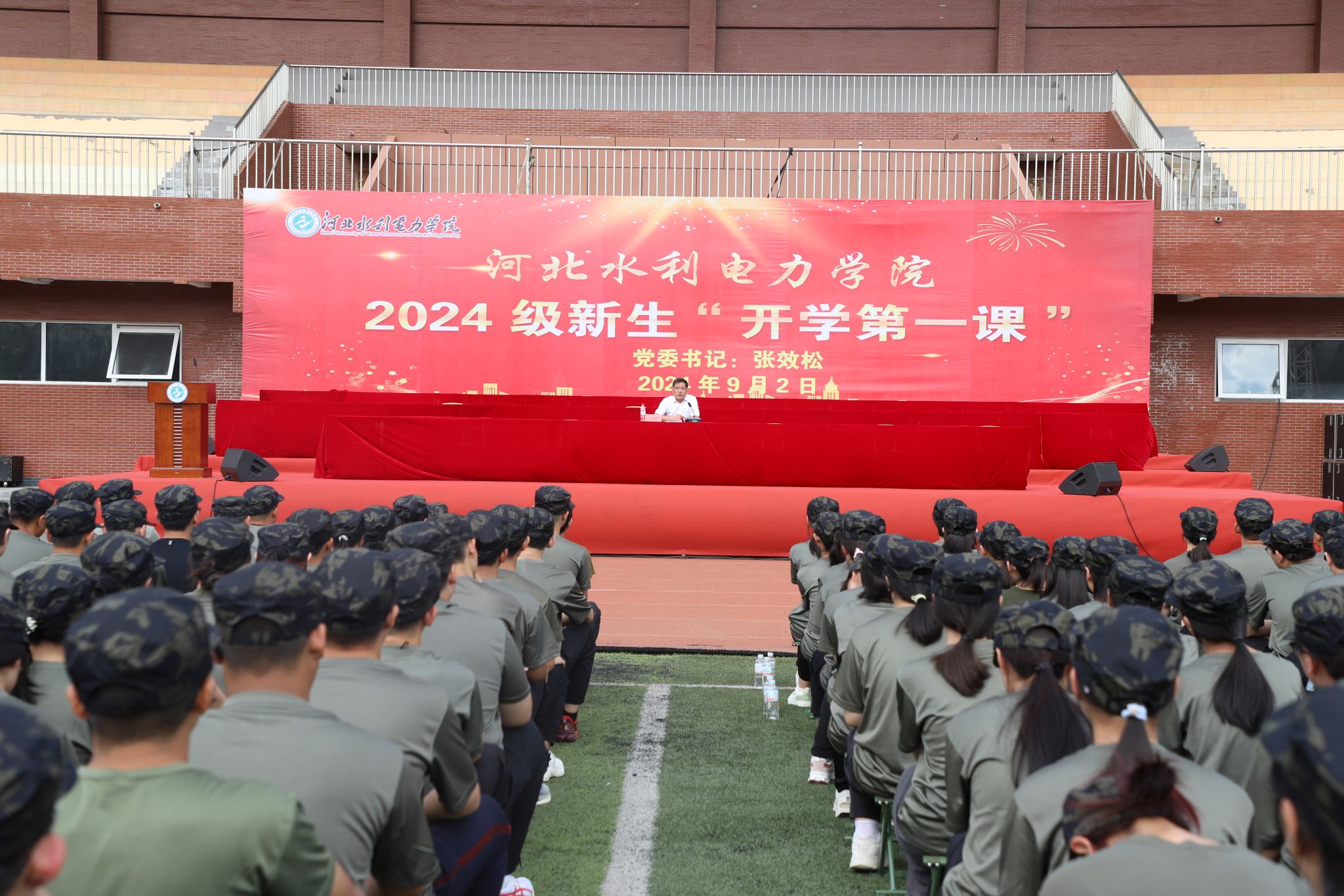 秋风送爽,丹桂飘香,九月的水院散发着自信、阳光与青春的气息。9月2日上午,党委书记张效松以《传承水院精神,筑牢信仰之基,用奋斗书写无悔青春》为题为2024级全体新生讲授“开学第一课”。