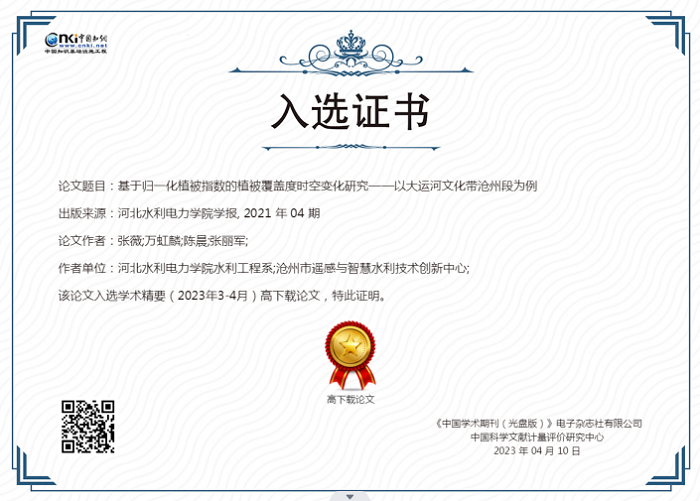 近日,中国知网《学术精要数据库》基于中国知网资源总库,首次发布近12年来高影响力论文榜单,《开云手机官方版在线入口学报》2021年第4期发表的《基于归一化植被指数的植被覆盖度时空变化研究——以大运河文化带沧州段为例》(作者:张薇、万虹麟、陈晨、张丽军)、《人脸识别的智能防疫系统设计》(作者:王继超、张丽娟、尤田、孙东来、回振桥)2篇论文入选。
