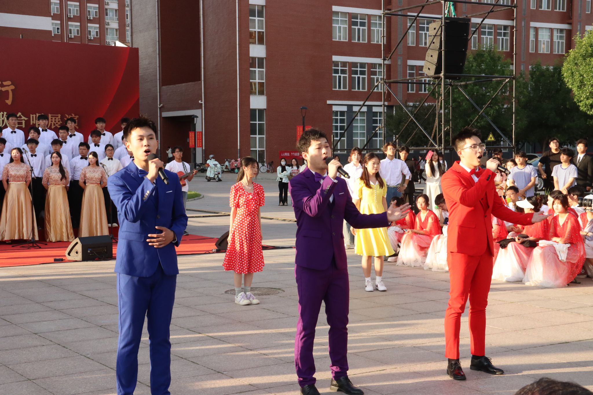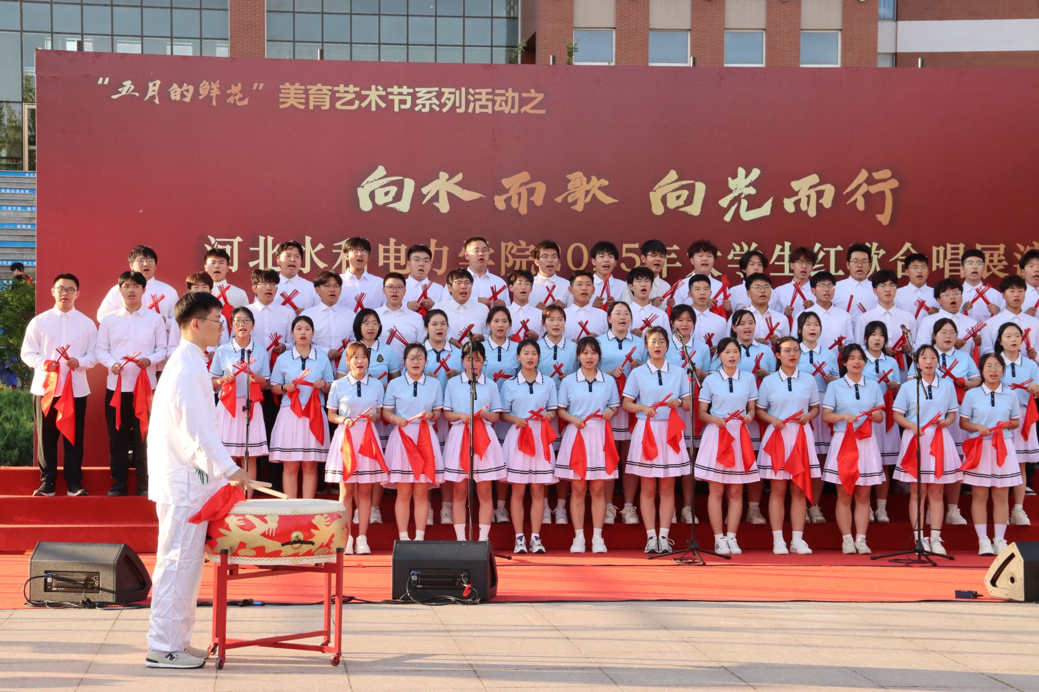 本次红歌展演活动由八系学生分别组成合唱队伍,以红色经典歌曲为载体,通过创新演绎方式,充分展现了我校新时代青年学子昂扬向上的精神风貌和深厚的家国情怀。