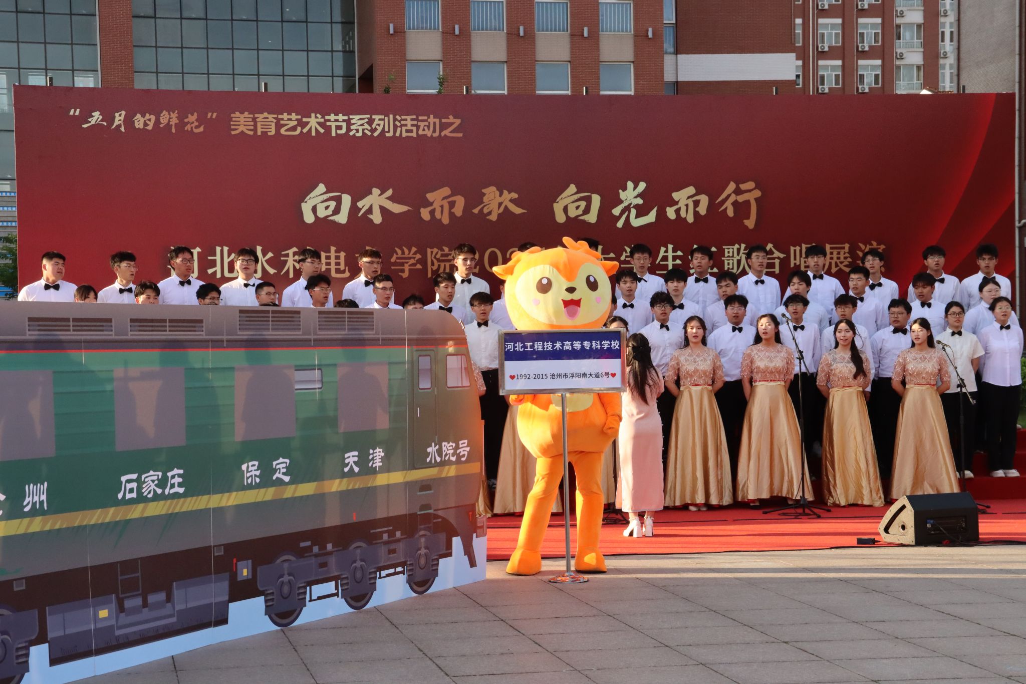此外,水利工程系、经济贸易系、机械工程系、交通工程系、土木工程系等也带来了《众人划桨开大船》等经典老歌,以及《强军战歌》《相亲相爱》《上春山》《不忘初心》等充满爱国情怀与新时代特色的歌曲,为现场观众带来了一场视听盛宴。电气自动化系的《光阴的故事》更是以学校“四迁”历史为线索,配合情景表演,尽显学校各历史时期青年师生拼搏奋斗的风采。