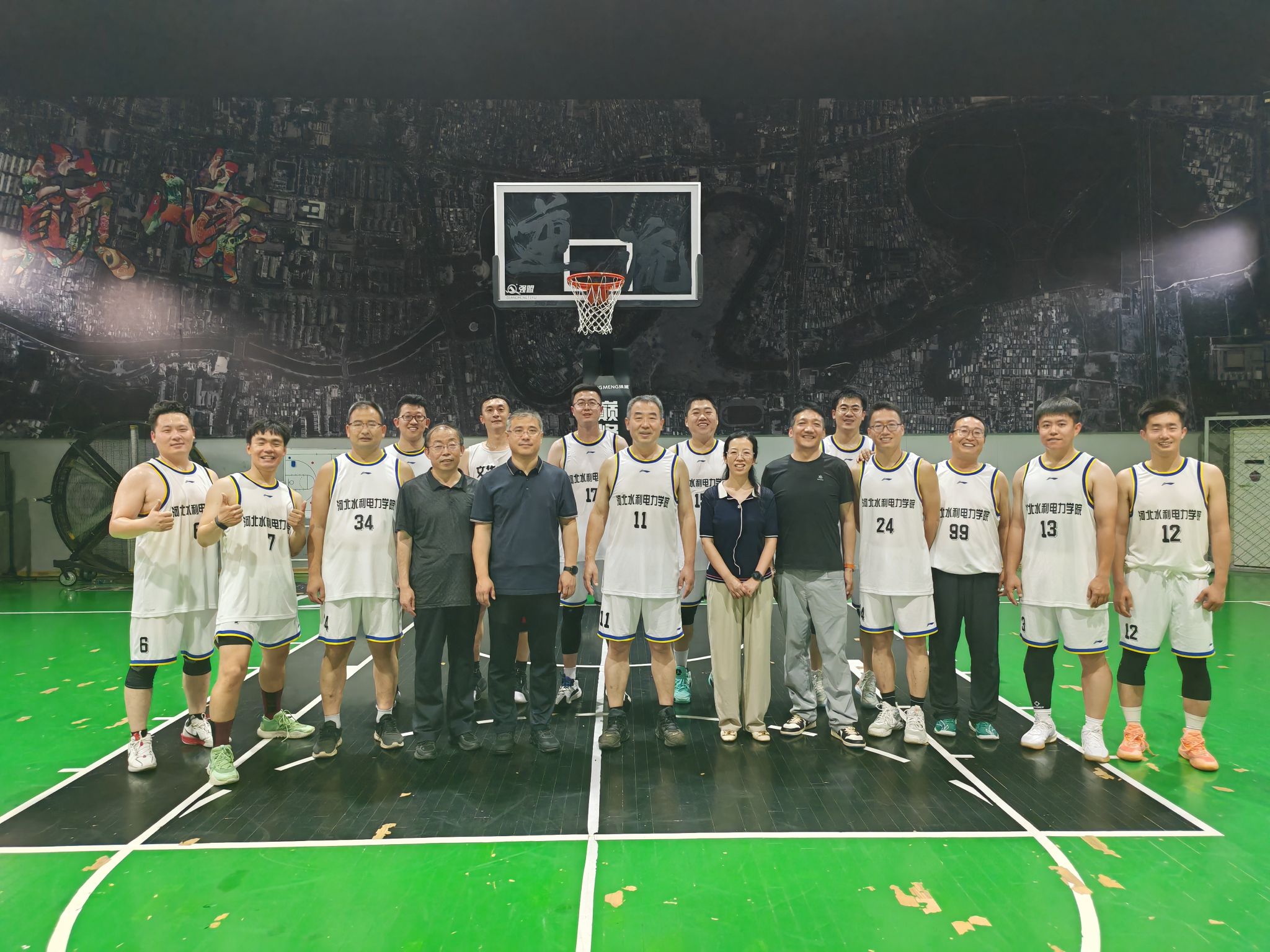比赛在巅峰体育馆火热开赛,副校长董志良亲自披挂上阵与队员们并肩作战。双方运动员精神饱满、斗志昂扬,攻防转换激烈,默契配合与精准投篮频频上演,充分展现了职工队伍团结协作、奋勇争先的精神风貌。"以赛促训、友谊第一"的宗旨贯穿本场比赛始终,队员们通过实战积累了宝贵经验,收获了友谊。经过激烈角逐,最终我校篮球队以微弱优势险胜沧州市市政工程股份有限公司篮球队。